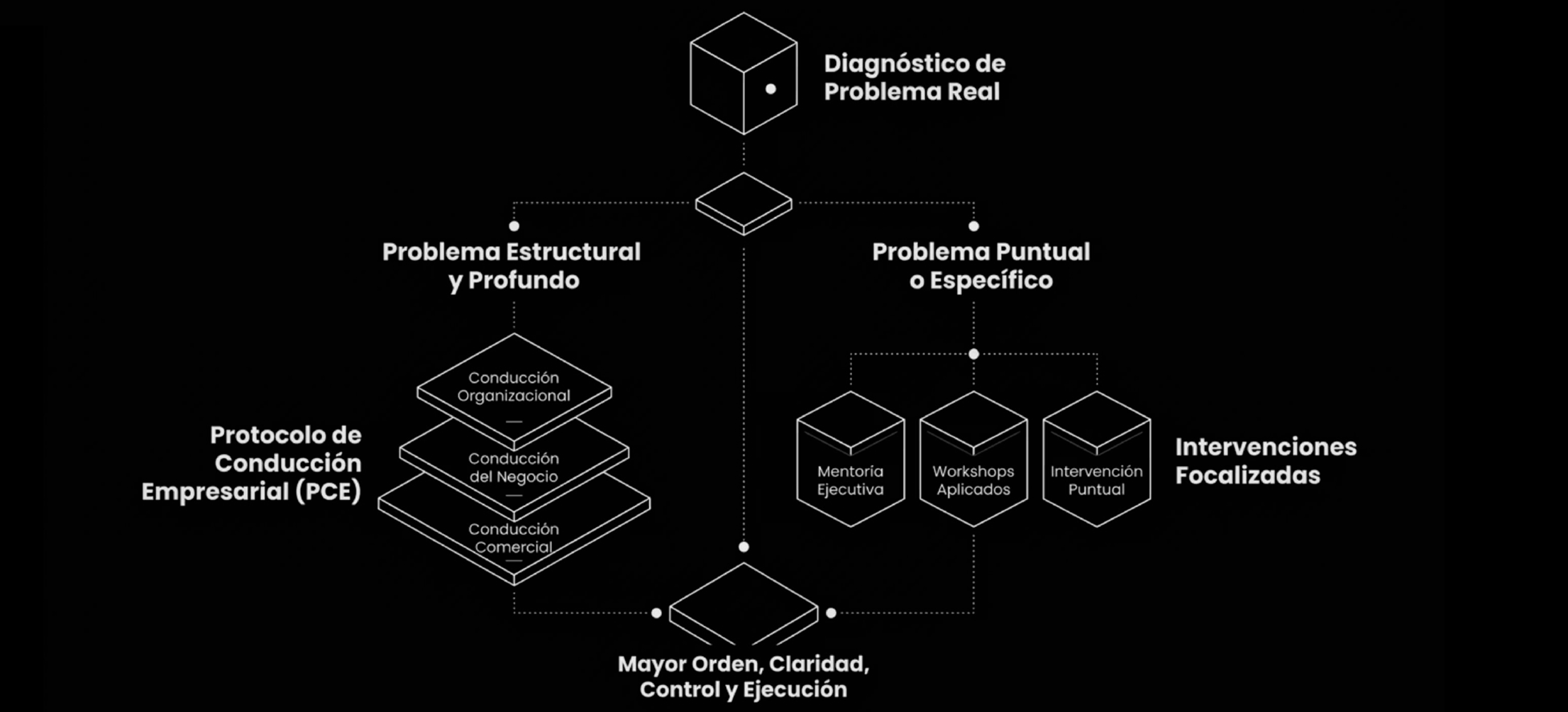 Intervención directa sobre las decisiones reales del dueño o directivo. Trabajo personalizado para desbloquear el criterio de conducción en momentos críticos del negocio.